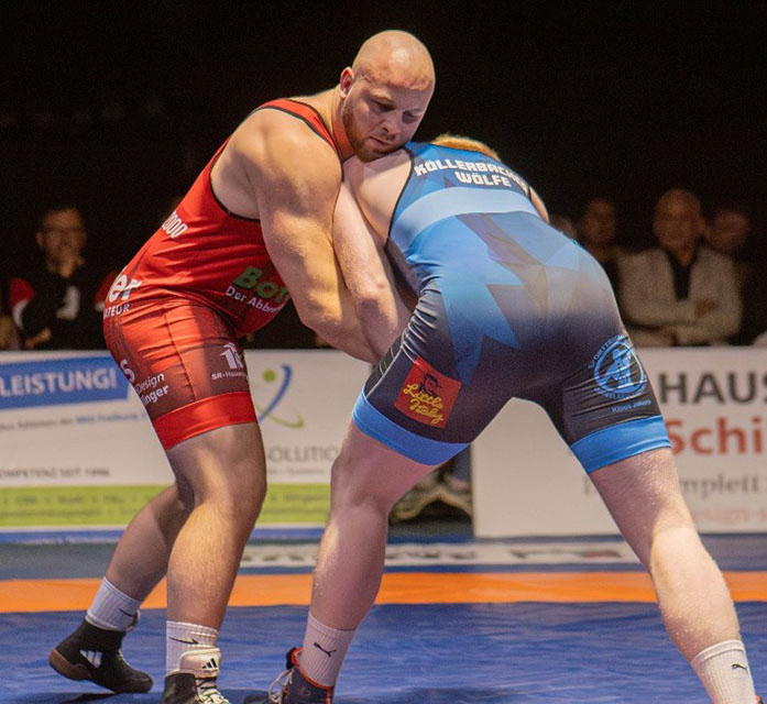 Hallensprecher Andy Kroll brachte es auf den Punkt: „Da ringt Vater gegen Sohn.“ Köllerbachs 45-jähriger „Veteranenringer“ Andriy Shyyka, zigfacher Deutscher Meister mit Legendenstatus, lieferte sich bei seinem 18:3-Überlegenheitssieg einen aktionsreichen Schlagabtausch mit dem eine Gewichtsklasse aufgerückten 17-jährigen Nachwuchstalent Dario Fischietti (75 kg/Fr).